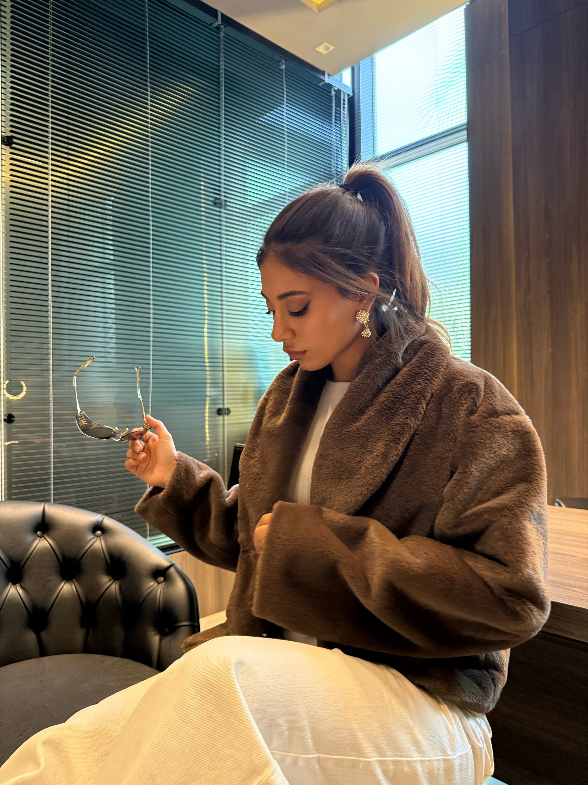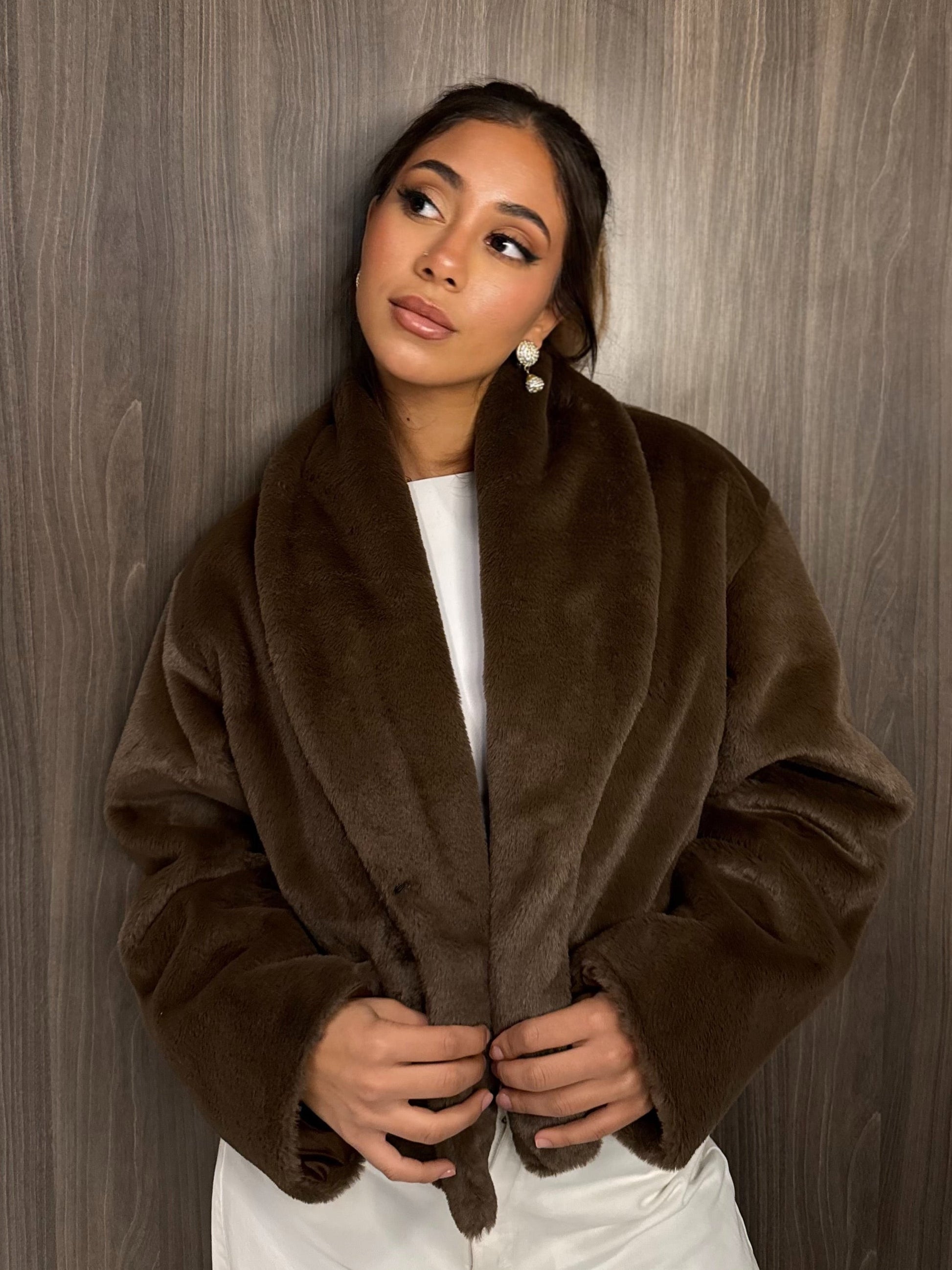Cropped Fur Jacket - Brown
